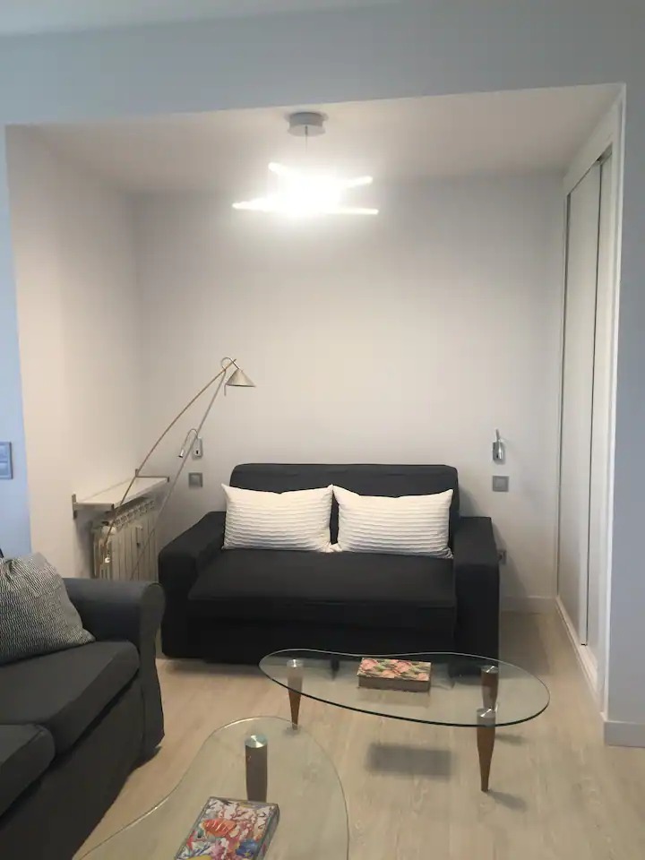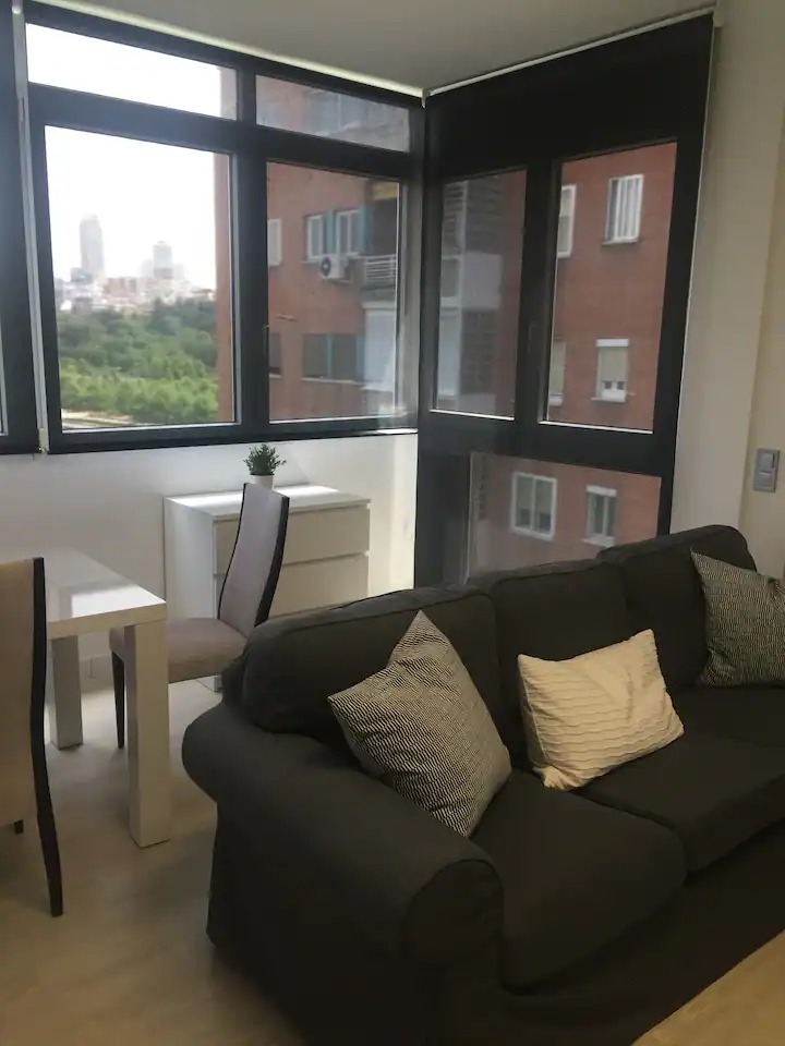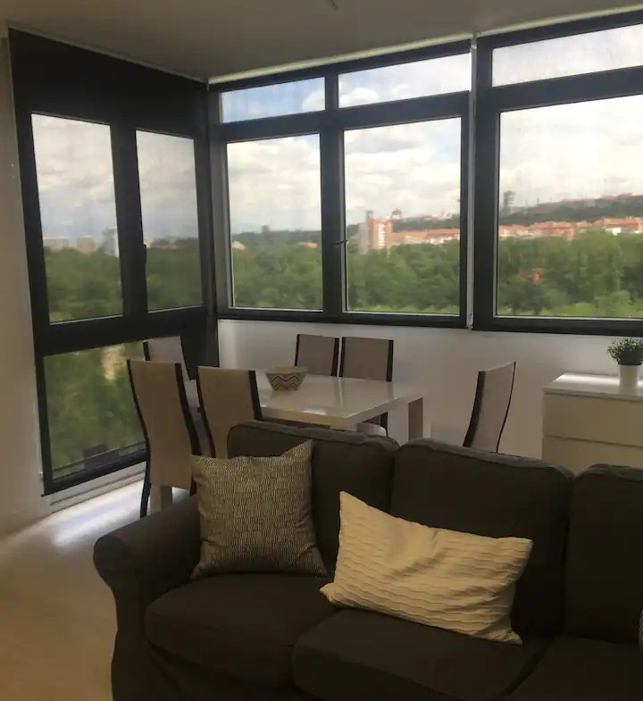 Amplio apartamento centrico, tranquilo, moderno, nuevo y completamente equipado: wifi, aire acondicionado/calefacción, lavadora, cocina completa, nevera, maquina de café,tador, ropa de cama y baño. Grandes ventanales con maravillosas vistas. Bien comunicado con metro/autobus a 5 minutos y a 10 minutos andando del centro de Madrid. Situado en Madrid Rio. Dispone de habitación individual y gran salon, cocina y baño. Gastos de servicios incluidos