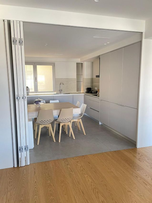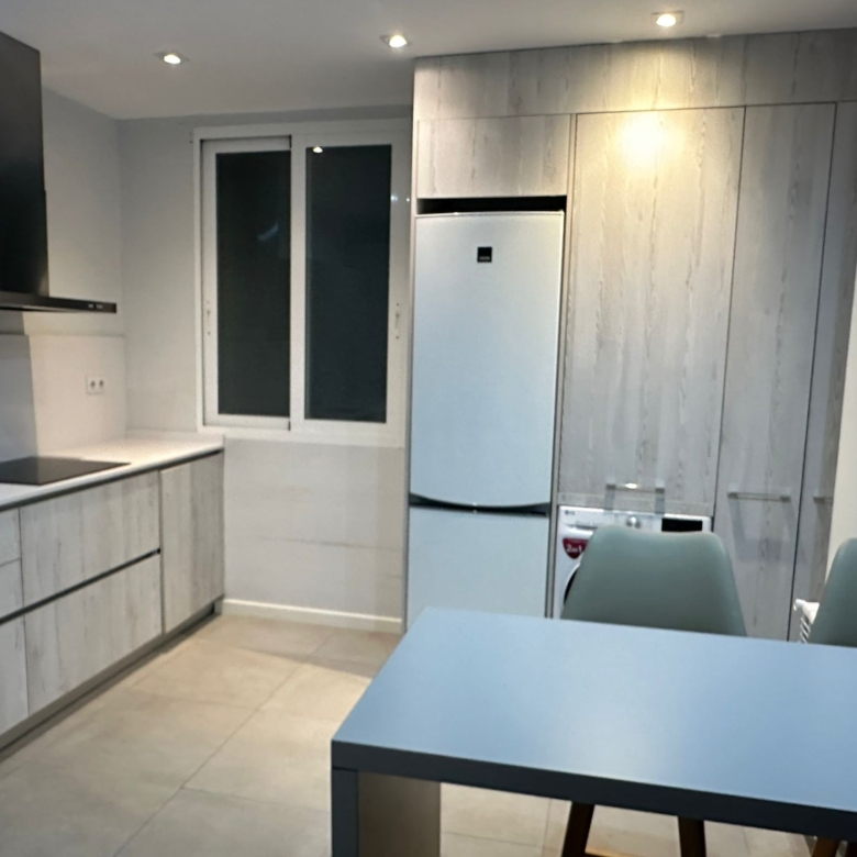 La cocina cuenta con electrodomésticos de primeras marcas y está unida físicamente al salón pero con puerta plegable que permite independizarla.