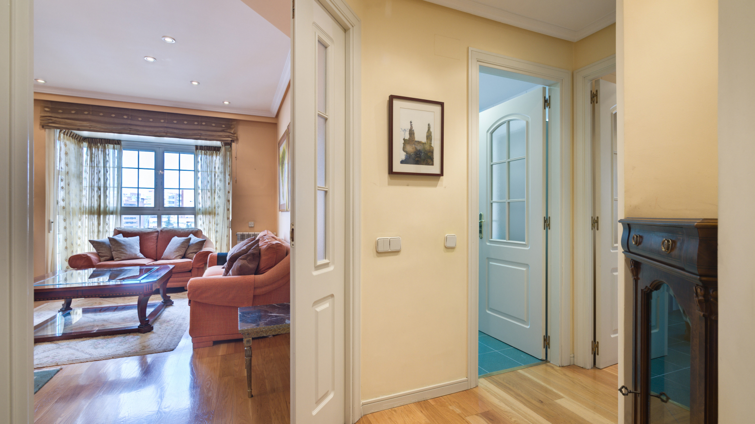 Hall de entrada con armario empotrado.