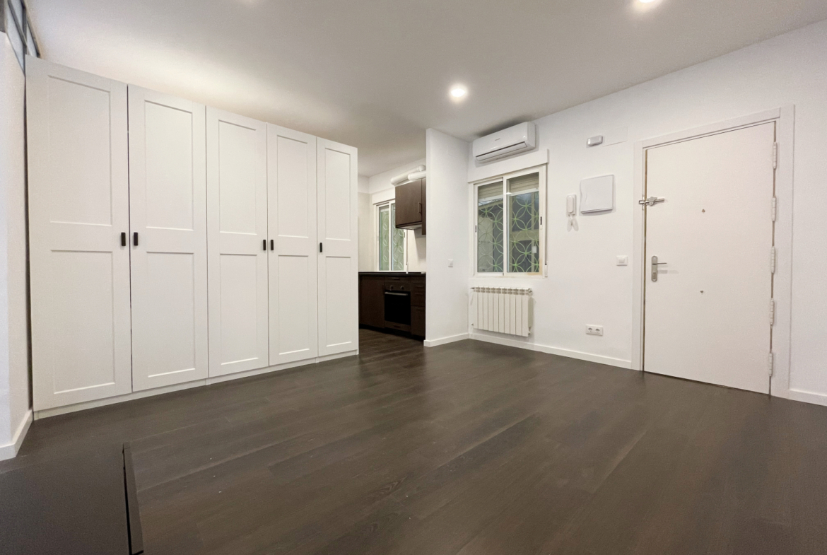 Se alquila atractivo y cálido piso de 50m2, soleado, exterior, sin barreras arquitectónicas y totalmente reformado, a estrenar, sin muebles pero con posibilidad de incluir el mobiliario sin incremento del alquiler. Ubicado frente al centro cultural Matadero y sus terrazas, Madrid Rio y sus áreas verdes, a dos calles del metro Legazpi.