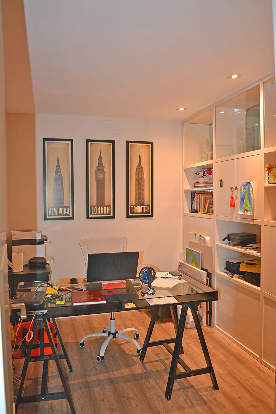 Despacho de trabajo, pasillo y 4 habitaciones con 2 baños, una de ellas en suite y con ropero particular. Todas las habitaciones cuentan con amplios armarios hechos a medida, y luz natural.